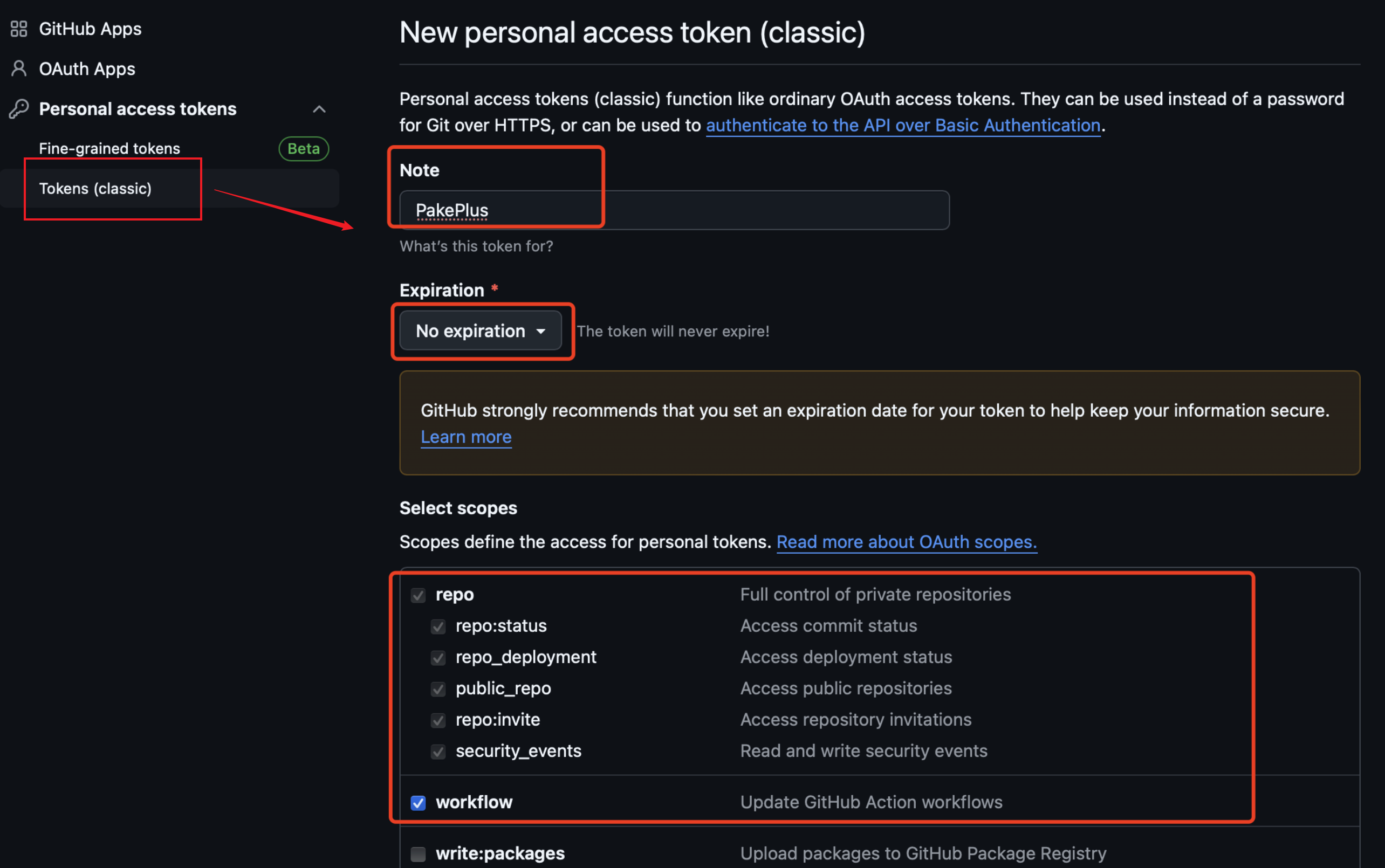 Why do we need Github Token? Because this compilation and packaging process relies entirely on the GitHub platform, it is necessary to use GitHub tokens to operate these tasks. Github is an open platform where anyone can create an account and obtain permanently free tokens. Thank you very much for the free service provided by Github. Obtaining a token is also very simple. For those who do not have an account, first register a GitHub account, and then go to the personal center to create a token.