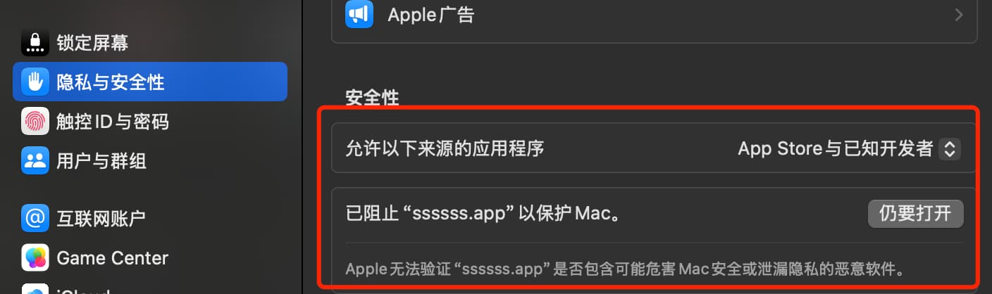 - 或到系统设置 > 隐私与安全 > 安全性 > 仍要打开,就可以了